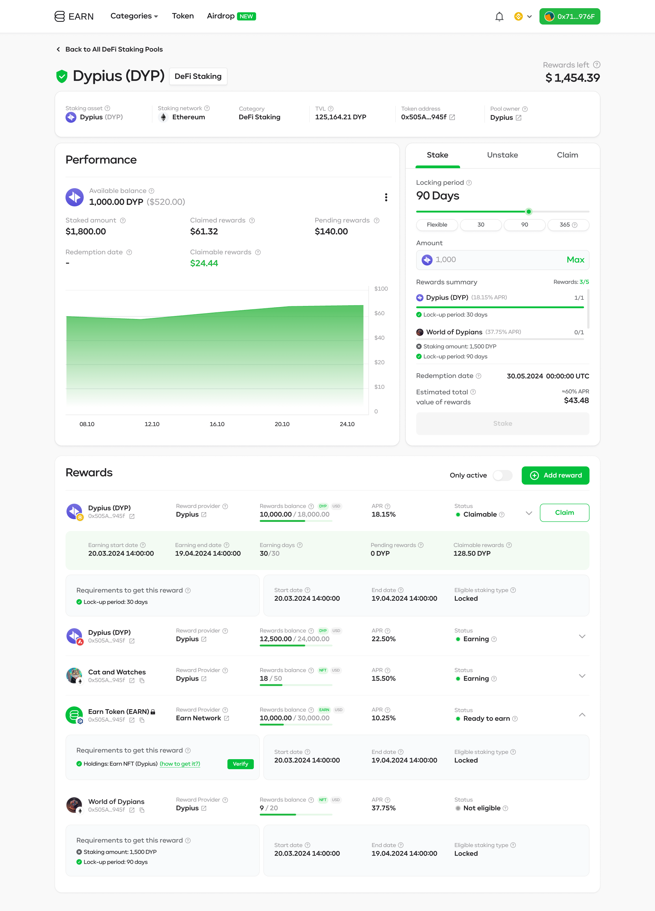 The DeFI Staking category provides everyday users with an accessible, secure and profitable way to earn yields on their digital assets. With a flexible and locked way of staking, users can adjust their investment strategy to suit their personal needs. Supported by a diverse range of assets across many popular chains and multiple reward systems, DeFi Staking is the perfect place to put your coins to work and optimize your returns.